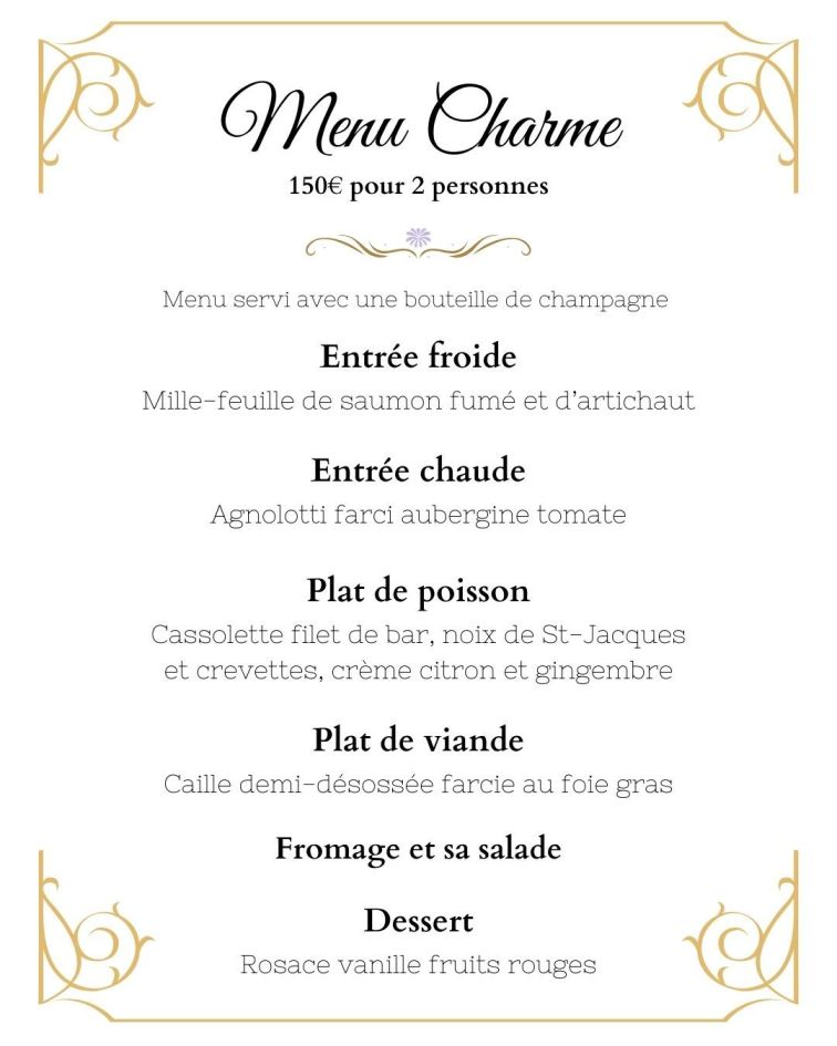 Pour agrémenter votre réservation, pourquoi ne pas rajouter une option menu ? Vous trouverez ci-dessous nos différentes formules pour vous faire plaisir.